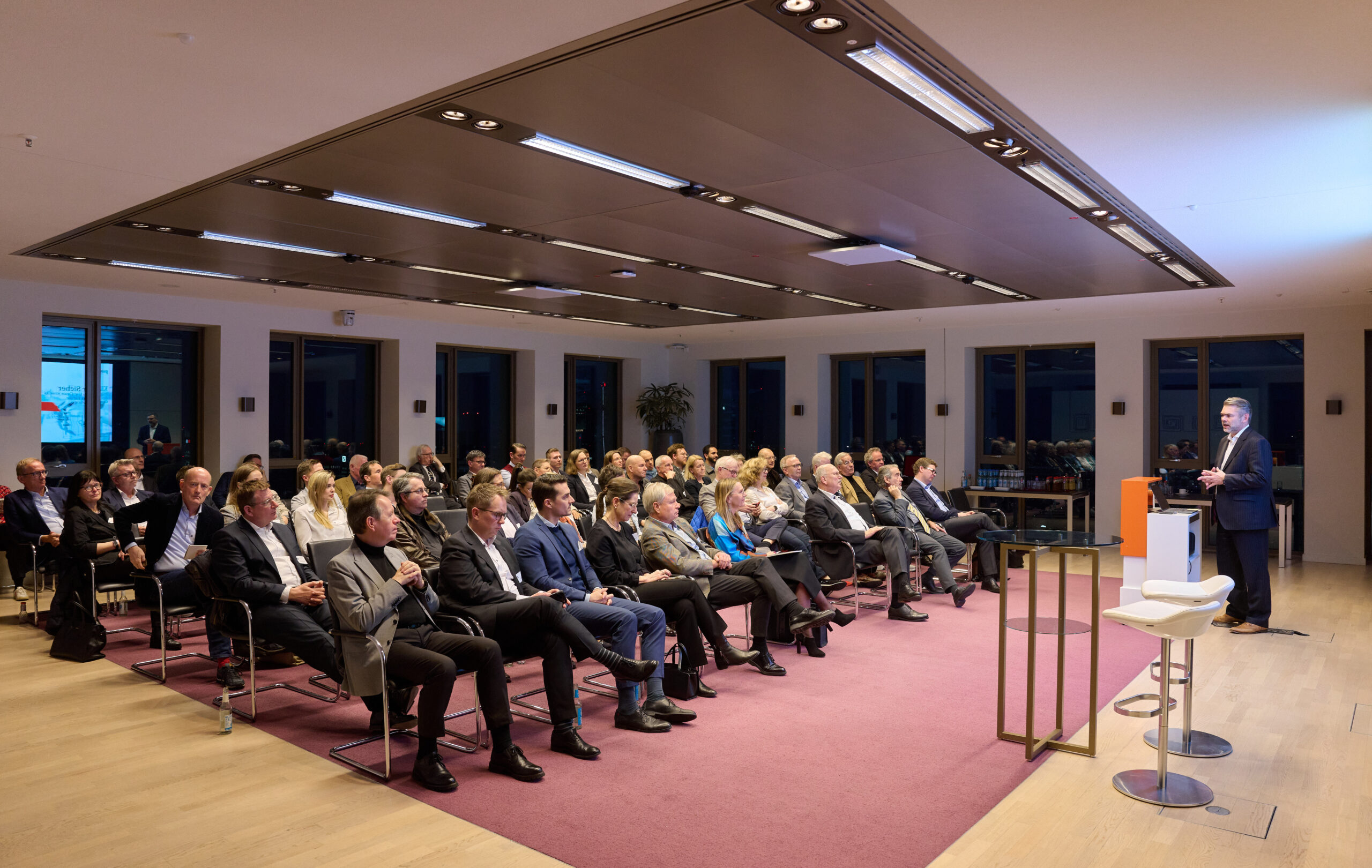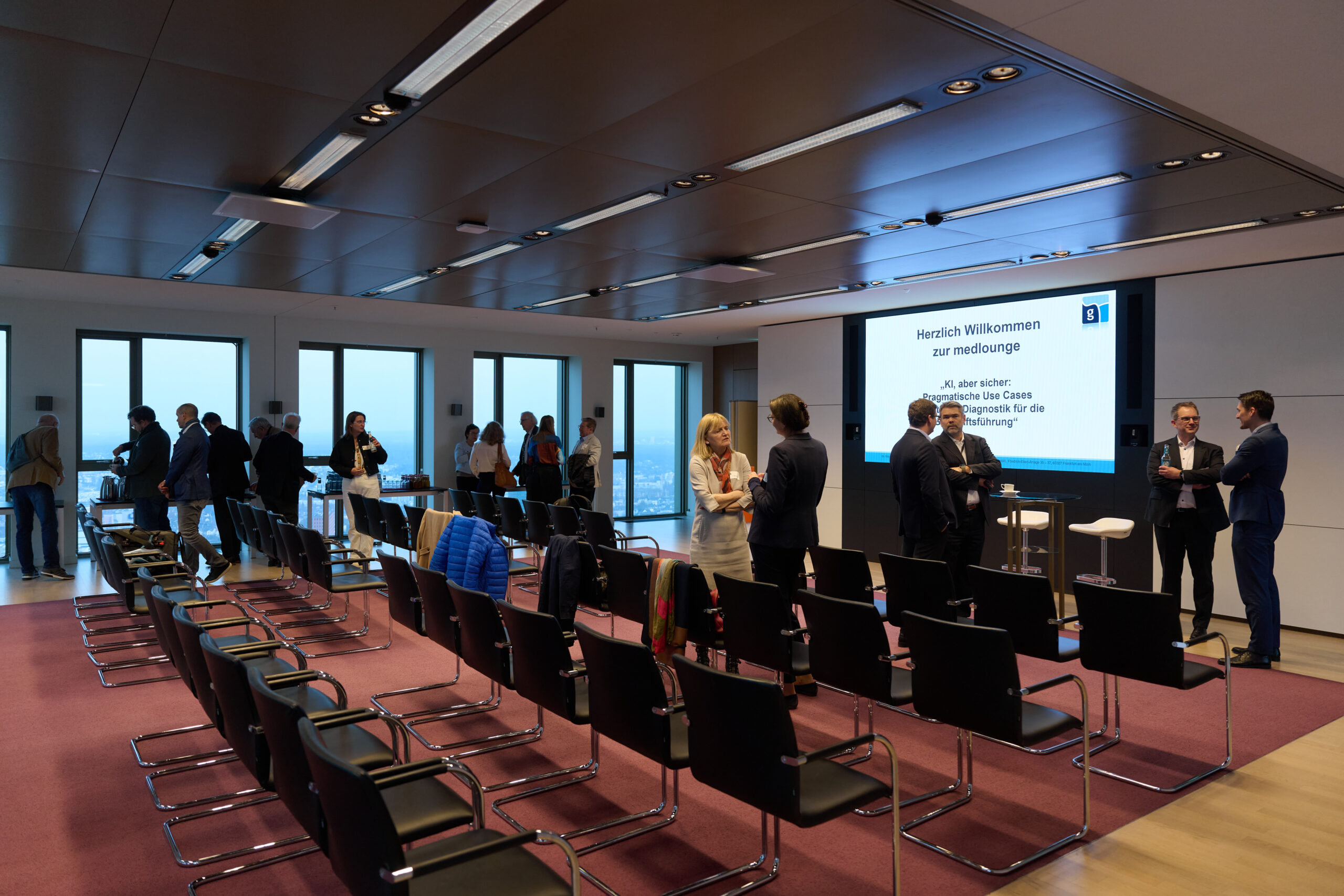 Am 9. März fand die medlounge der gesundheitswirtschaft rhein-main e.V. (gwrm) zum Thema „KI, aber sicher: Pragmatische Use Cases jenseits der Diagnostik für die Geschäftsführung“ statt, zu der der gwrm-Vorsitzende Stefan Grüttner die Teilnehmerinnen und Teilnehmer in der Sky Lounge von PwC im 48. Stock des Tower 185 in Frankfurt a.M. begrüßte.