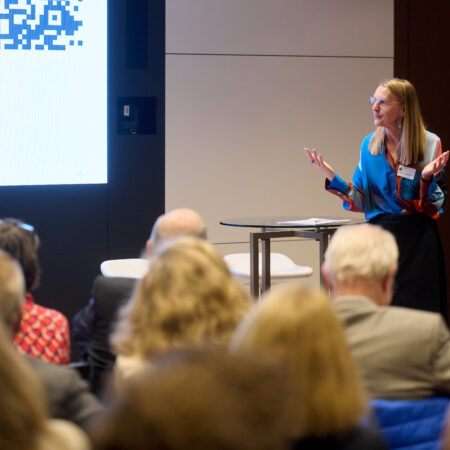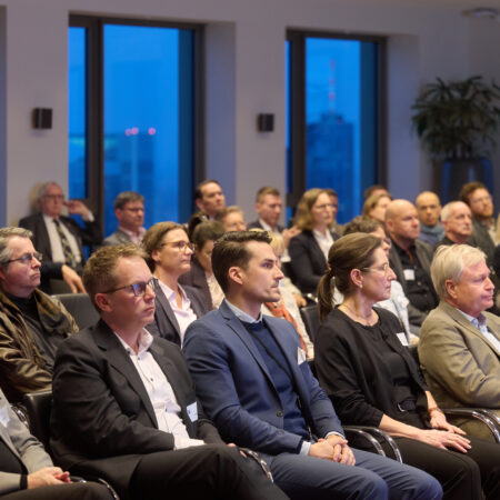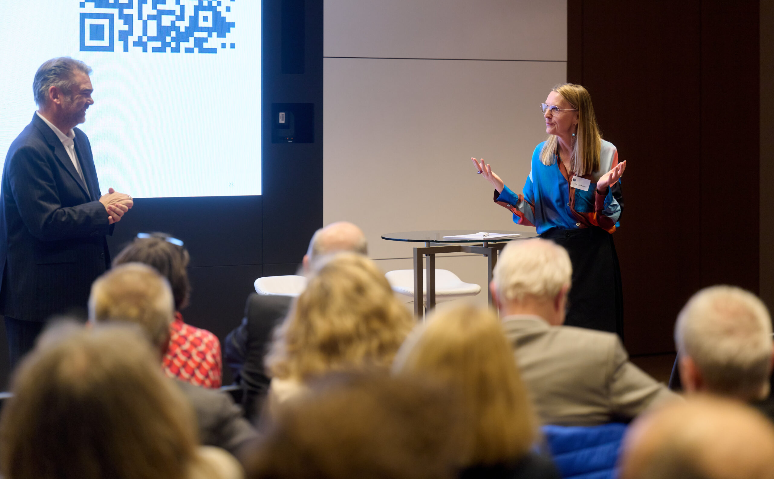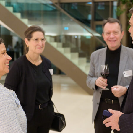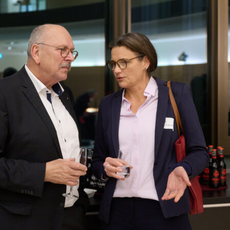 In der daran anschließenden lebhaften Diskussion mit dem Publikum, die Prof. Lilia Waehlert (Charlotte Fresenius Hochschule) moderierte, wurden Erfahrungen und Einschätzungen zum KI-Einsatz in verschiedenen Bereichen des Gesundheitswesens diskutiert. Der Abend klang mit einem anschließenden Get-Together aus.