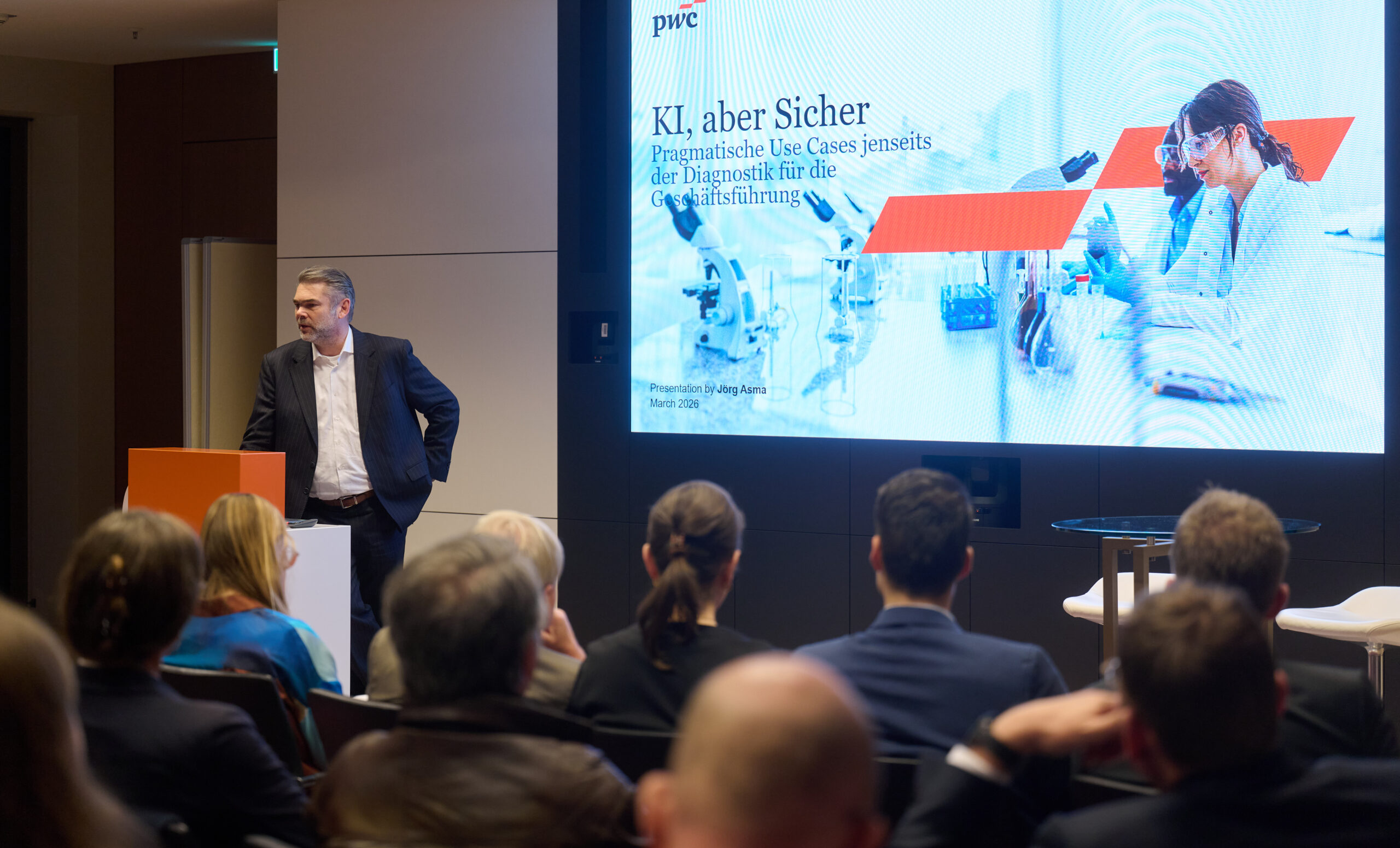 Danach präsentierte Jörg Asma, Consulting Leader Healthcare bei PwC Deutschland, anhand von sieben Use Cases, wie Künstliche Intelligenz (KI) im Gesundheitsbereich pragmatisch eingesetzt werden kann und warum KI-Diagnostik nicht das erste Projekt für Geschäftsführungen sein sollte, da diese meist langwierig und kostenintensiv sind. Asma führte aus, dass das größere Potenzial im Bereich Administration und Prozesse liegt, da dort regulatorische, ökonomische und operative Sicherheit am ehesten gewährleistet werden können. „Während wir auf die perfekte KI-Diagnostik warten, ertrinken unsere Ärzte in Arztbriefen“, so Asma. Dies erläuterte er an sieben Use Cases zum KI-Einsatz bei Arztbriefschreibung, Terminplanung (via TI-Messenger), Belegungsplanung über Codier-Assistenzsystem, Entlassmanagement bis hin zu Predictive Maintenance und Beschaffung sowie Personalmanagement und Dienstplanung. Zum Abschluss stellte er eine Umsetzungs-Roadmap vor, die vom Quick Win über Skalierung bis zur Transformation drei Horizonte der KI-Einführung skizziert und nannte fünf Erfolgsfaktoren für die Geschäftsführung.